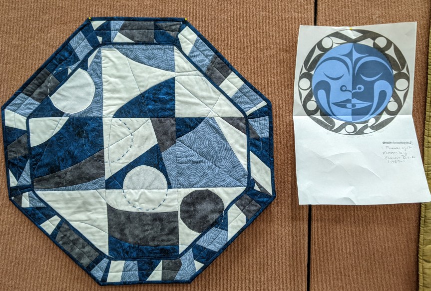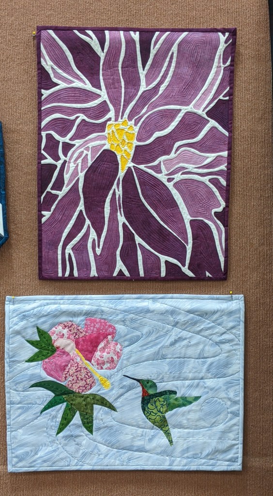 Since she is still sewing on the facing, Caroline’s piece from the David Owen Hastings workshop looks a little wonky. And some big stitch quilting is still to come!
