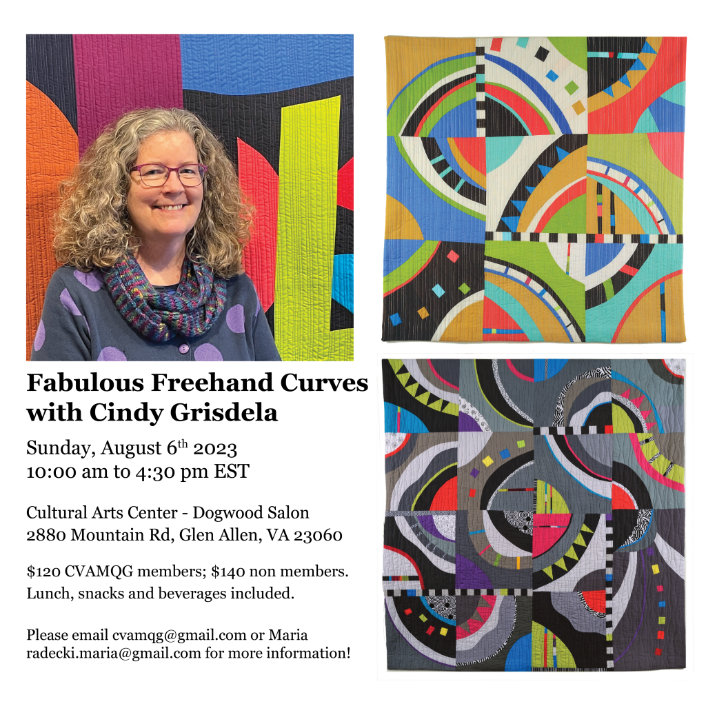 The Central Virginia Modern Quilt Guild is hosting a Cindy Grisdela workshop on August 6th at the Cultural Arts Center in Glen Allen.